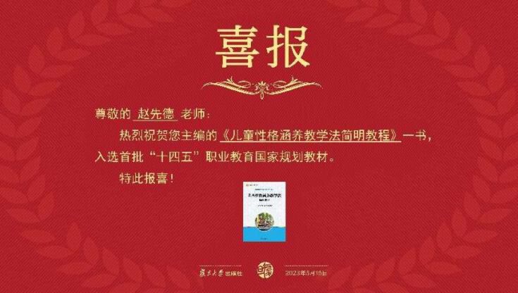 今年二季度,深圳市乐学乐园儿童性格养正研究中心创编的《儿童性格涵养教学法简明教程》经过层层申报、审批,正式成为“十四五”职业教育国家规划教材,至此,《儿童性格涵养教学法简明教程》正式步入国家高等职业教育学前专业人才培养的教程序列。